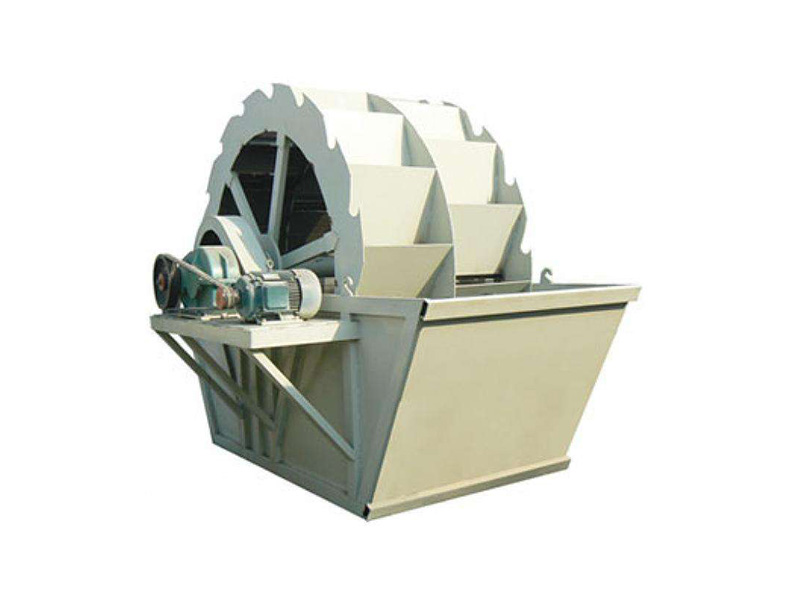 工作時,電機通過三角帶、減速機、齒輪減速后帶動葉輪緩慢轉動,砂石有給料槽進入洗槽中,在葉輪的帶動下翻滾,并互相研磨,除去覆蓋砂石表面的雜質,同時 破壞包覆砂粒的水汽層,以利于脫水;同時加水,形成強大水流,及時將雜質及比重小的異物帶走,并從溢出口洗槽排出,完成清洗作用。干凈的砂石由葉片帶走,  后砂石從旋轉的葉輪倒入出料槽,完成砂石的清洗作用。